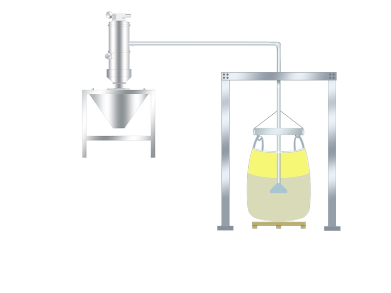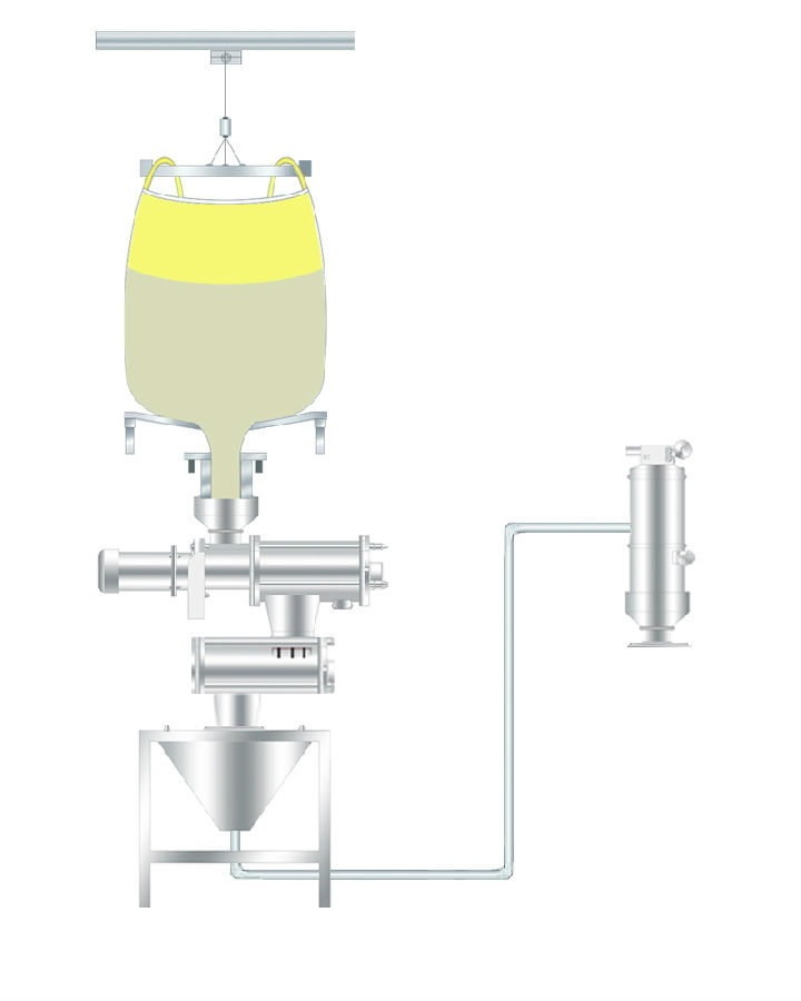 說明:此種吸料方式是由下往上吸料,拆包機下部出口需加裝補氣裝置。